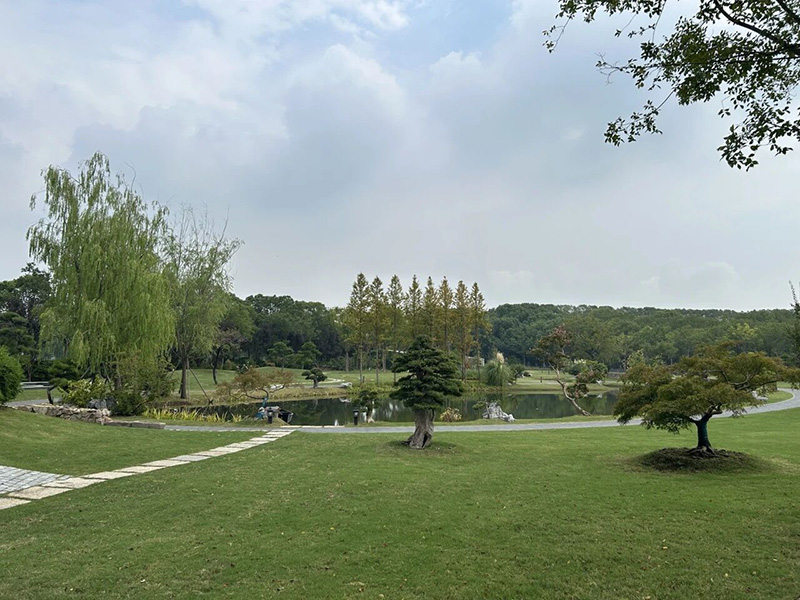 调研团首先参观了位于吴江胜地生态园内的胜地米泽盆景文化园。该园占地26亩,是一座集生态、艺术与教育功能于一体的盆景艺术文化园区。园内以草坪为底色,配置了枇杷、垂柳、梅花、柿树等花木,小溪蜿蜒流淌,低矮的园墙旁摆放着黄杨、罗汉松、榔榆及松柏类等盆景。调研团成员听取了苏州市吴江区政协委员、吴江区职工盆景协会会长沈月坤关于投资建设盆景园、促进当地苗木产业转型升级的经验介绍与体会分享,并就发挥盆景园功能特色、传播盆景艺术文化、全方位多角度普及盆景知识、开展社会实践活动等内容进行了深入探讨。