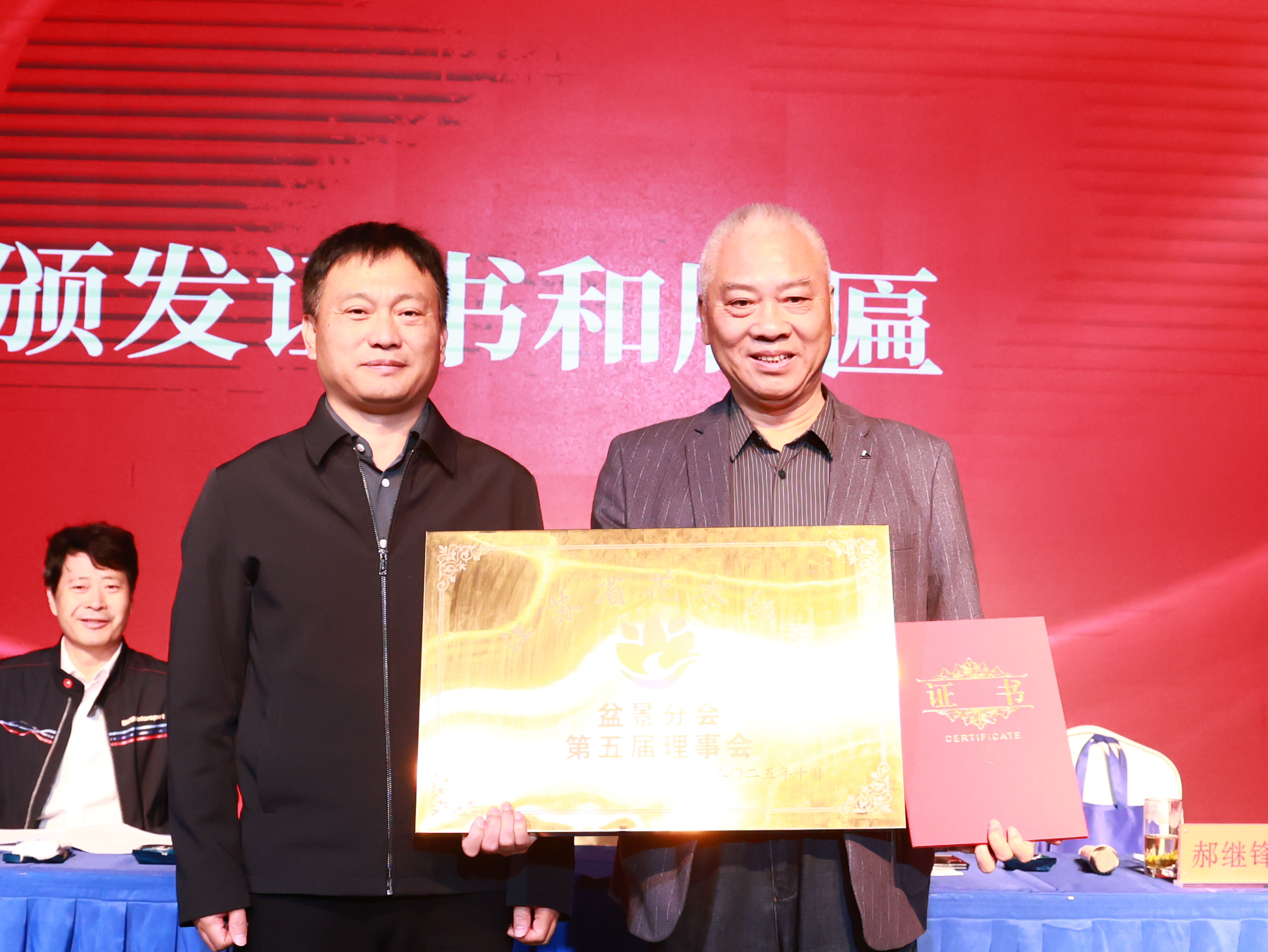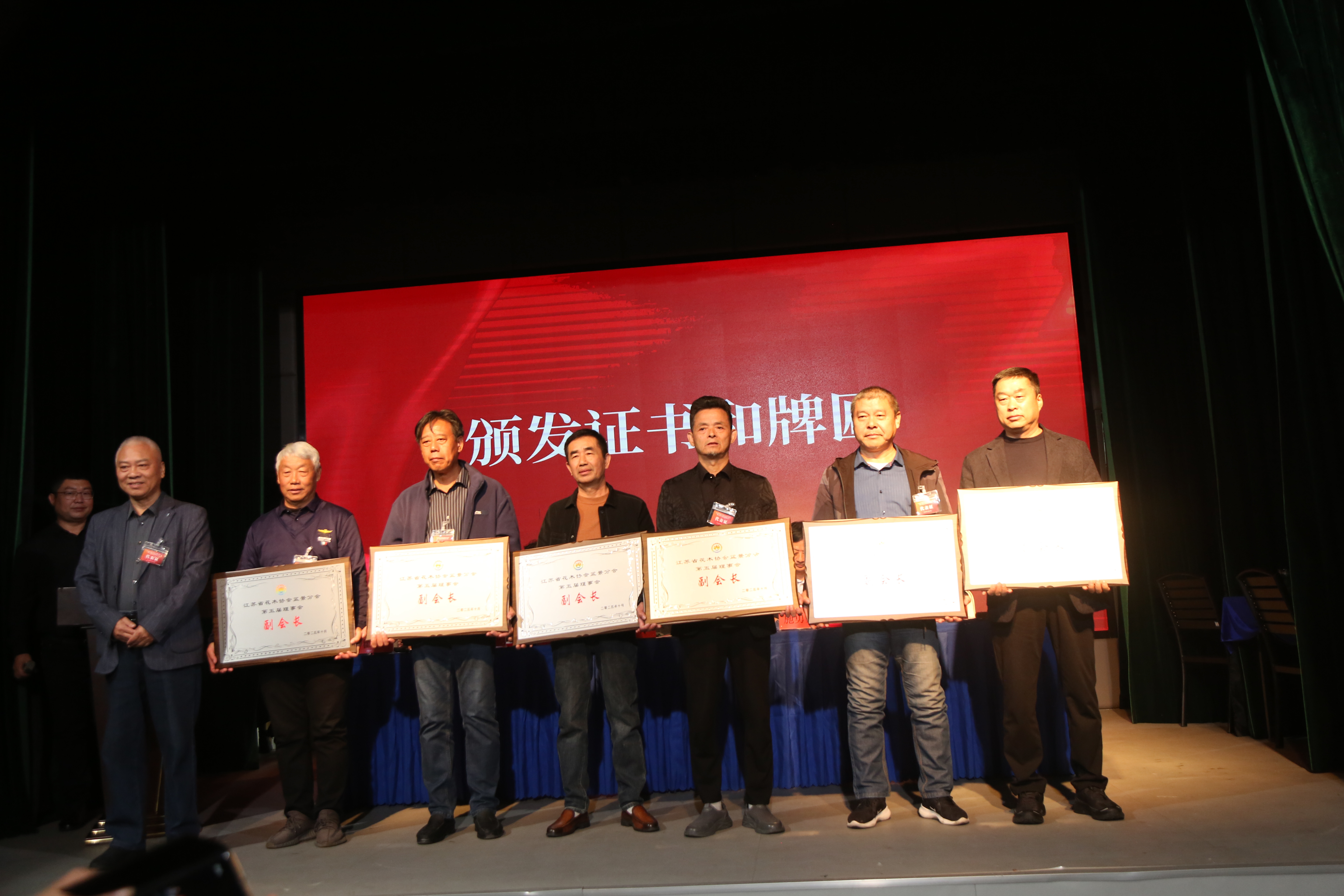 10月31日,江苏省花木协会盆景分会换届大会在如皋举行,省花木协会会长汪仁、副会长兼秘书长瞿辉、副会长施勇如、中国花卉协会盆景分会会长杜永红、如皋市政府副市长黄文斌等领导出席会议,来自省内盆景领域专家、技术推广、生产企业等部门代表80余人参会。会议审议通过第五届理事会工作报告、理事会成员产生办法、分会工作条例、理事及常务理事建议名单,还举行了授牌、签约仪式等活动。经会议选举,中国花卉协会盆景分会秘书长郝继峰任分会第五届理事会会长,花木大世界(如皋)国际园艺城公司总经理王皓任秘书长。